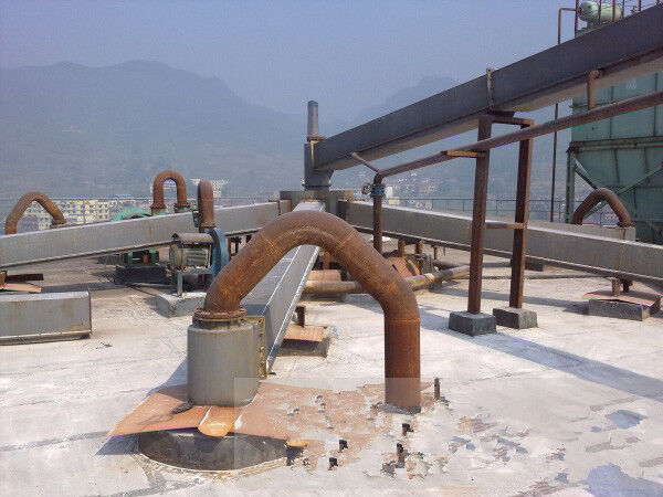 進料溜管:為減少進料口下透氣層局部磨損用的緩沖板,在安裝現(xiàn)場可按安裝總圖繪出的入料管位置,和入料溜板施工圖中的尺寸鉆孔固定。