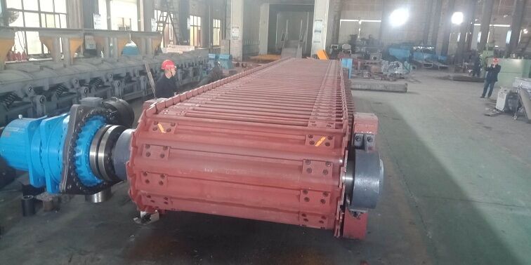 槽板為圓弧搭接式(OK板),采用低合金鋼板組焊而成,強(qiáng)度高、耐磨損、不漏料,輸送槽底板厚度≥16-25mm、此板沖壓成型,在槽板上下增加了80-120mm加強(qiáng)筋,提高了整體的剛度、強(qiáng)度及耐磨性,延長使用壽命。槽板互相搭接,工作時(shí)不漏料,槽板上下加強(qiáng),具有更大的承載能力;