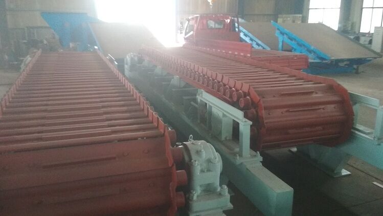 負(fù)荷鏈板材料選用優(yōu)質(zhì)合金鋼板沖壓而成。給料板式給料機(jī)每塊負(fù)荷鏈板上焊有折彎角鐵,既能滿足大傾角向上運(yùn)送物料,又提高負(fù)荷鏈板的強(qiáng)度。在鏈板寬度較寬的情況下增加輔助支撐,該項(xiàng)結(jié)構(gòu)不但增加了鏈板的強(qiáng)度,而且使運(yùn)輸過(guò)程更加平穩(wěn)可靠。拉料板式給料機(jī)為了增加鏈板表面的摩擦,防止物料打滑,在負(fù)荷鏈板上增加了一定數(shù)量的耙齒,對(duì)防止搭橋有一定的緩沖作用,保證了給料的均勻性。