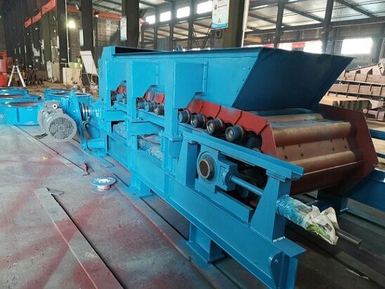 導(dǎo)料板的長度通常由進料方式確定,如果板式給料機是放在料倉下面,那么在料倉下面就不需要設(shè)計導(dǎo)料板,料倉往外到驅(qū)動軸這一段就要設(shè)計導(dǎo)料板。如果是通過裝載機往板式給料機供料,則板式給料機全段都要設(shè)計導(dǎo)料板。