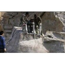 1.先用鑿巖機在巖石上鉆孔,鉆孔直徑要符合作業(yè)中的劈裂機楔塊組件的大小及長度,若巖石體積較大,可鉆多孔,一機多支分裂機同時作業(yè);巖石體積較小,一機就可操作。(鉆孔時需注意,礦石鉆孔的方位應垂直于孔所在的表面,孔的大小應與劈裂器的直徑相適應,鉆孔的深度比楔塊組件插人長度深200一250mm。)