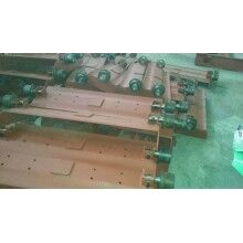 購買已確定要改動(dòng)的部件,利用大修時(shí)間,將頭輪和尾輪拆除,對(duì)軸進(jìn)行加工,重新安裝;槽板拆除后,對(duì)與輸送鏈條配合的定位孔進(jìn)行加工;行走輪固定座需焊接至槽板上的,在線下加工完成后焊至槽板上;支重系統(tǒng)等可在鏈輪加工期間完成,整個(gè)改造過程較為緊湊。