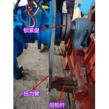 驅(qū)動機構(gòu)由電機、減速機、鎖緊盤和扭力裝置組成,驅(qū)動機構(gòu)通過鎖緊盤帶動鏈輪軸旋轉(zhuǎn),從而對物料進(jìn)行輸送。為了抵抗驅(qū)動機構(gòu)隨鏈輪軸旋轉(zhuǎn)的力,扭力裝置需要固定在地基上或者機架上。