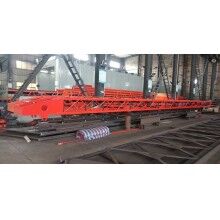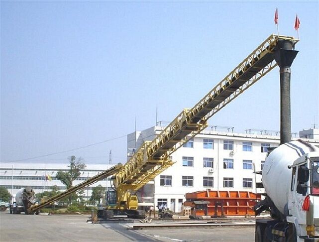 首先將布料桁架放下,在桁架前端用安全凳墊好;依次拆下附件(油管、電氣)、上料膠帶機、主機受料斗、配重、油缸、布料膠帶機、三角支架等。