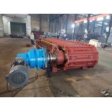 板式給料機安裝順序為:底座---機架---傳動裝置---及驅(qū)動輪---張緊輪---上下托輥---鏈帶---槽板---受料槽和卸料槽---欄板。