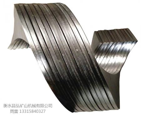 絞龍葉片具有剛性好,表面光潔,形狀規(guī)整,內(nèi)外徑可調(diào),長短可定,精度高,便于安裝,避免了傳統(tǒng)的手工焊接葉片因焊接質(zhì)量造成的弊端,也提高了絞龍葉片的加工能力,扎出的絞龍葉片材質(zhì)是碳鋼板,Q235,Q345和304不銹鋼板,特別是碳鋼板,絞龍葉片表面產(chǎn)生冷作硬化,硬度和耐磨性提高一倍左右,特別是外沿硬度可達HB240,希望廣大用戶不必擔心邊緣薄的原因,此設備可調(diào)試扎出幾十種規(guī)格的絞龍葉片。