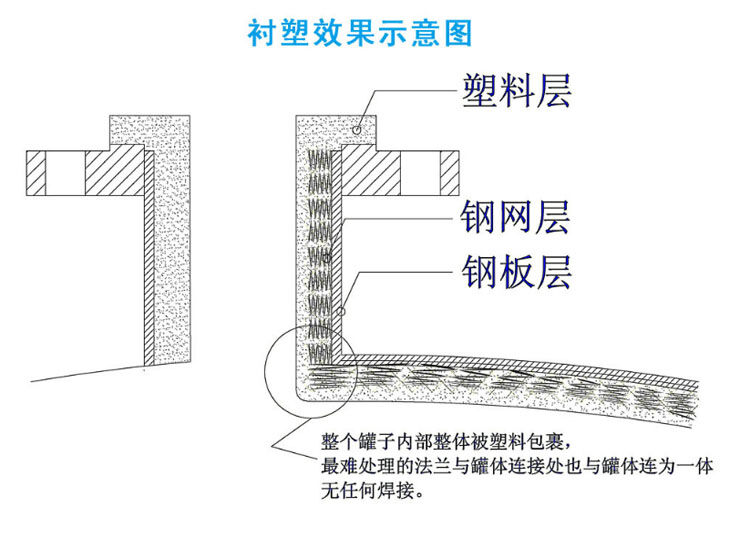 98%濃硫酸分工業(yè)級(jí)和試劑級(jí)。兩者的儲(chǔ)存要求也是不同的。工業(yè)級(jí)的濃硫酸工藝要求不高的只需對(duì)罐體做簡(jiǎn)單清潔處理。要求高的必須對(duì)儲(chǔ)罐徹底清洗,如水清洗不了的,應(yīng)用濃硫酸作清洗劑進(jìn)行清洗。因?yàn)閮?chǔ)罐內(nèi)稍有有機(jī)物,就能使?jié)饬蛩崛芤侯伾凕S變黑。用PE儲(chǔ)罐裝濃硫酸的優(yōu)點(diǎn),就是濃硫酸不會(huì)帶入鐵儲(chǔ)罐、不銹鋼儲(chǔ)罐中含有的Fe+、NI+、Me+、Cr+等金屬離子。由于濃硫酸比重為1.84,大規(guī)格的PE儲(chǔ)罐我們廠家是不建議采用的,小規(guī)格PE儲(chǔ)罐應(yīng)采用加厚型。針對(duì)PE儲(chǔ)罐強(qiáng)度不足不耐壓而設(shè)計(jì)生產(chǎn)的鋼襯PE儲(chǔ)罐也適用濃硫酸的儲(chǔ)存,由于鋼襯PE儲(chǔ)罐的制造工藝問(wèn)題,無(wú)法避免PE層內(nèi)會(huì)有少量焊渣的存在,因此儲(chǔ)存試劑級(jí)98%濃硫酸清洗要求就更高了。用PE儲(chǔ)罐、鋼襯PE儲(chǔ)罐不僅解決了碳鋼儲(chǔ)罐實(shí)際使用中的腐蝕問(wèn)題,也替代了昂貴的聚四氟乙烯材料和特種不銹鋼材料。