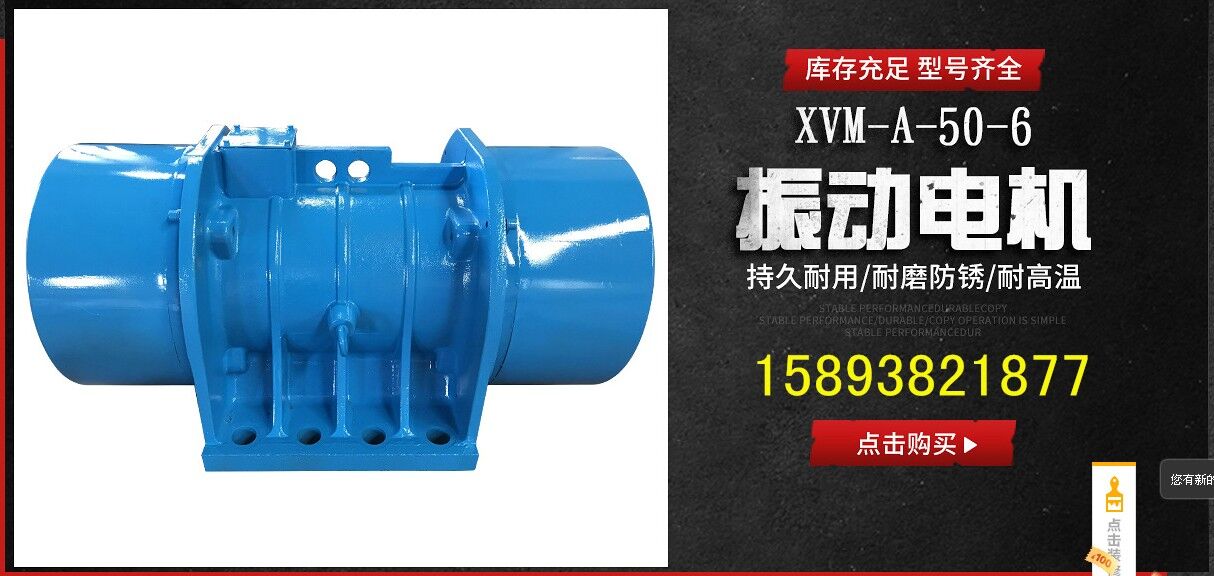 XVM-A系列振動(dòng)源三相異步電動(dòng)機(jī)集動(dòng)力源和振動(dòng)源為一體,是一種高效節(jié)能的通用性激振源,體積小,激振力大,結(jié)構(gòu)可靠,使用維護(hù)方便,簡(jiǎn)稱振動(dòng)電機(jī)。其它名稱:,震打電機(jī)。本系列產(chǎn)品廣泛應(yīng)用于礦山、煤炭、電力、化工、糧食加工、冶金、鑄造、輕工、醫(yī)藥等行業(yè)。是實(shí)現(xiàn)粉狀、粒狀、塊狀等散體料機(jī)械化篩分、輸送、破碎、充填、防堵塞的理想激振源。本機(jī)可單機(jī)使用,也可多機(jī)組合使用。 1、振動(dòng)電機(jī)使用條件 本系列振動(dòng)電機(jī)滿足下列條件時(shí),能連續(xù)輸出額定激振力。 (1) 振動(dòng)加速度:不超過7g(g:重力加速度) (2) 環(huán)境溫度:不超過40℃ (3) 海拔:不超過1000m (4) 電源頻率:50HZ (5) 電壓:380v (6) 溫升:小于80K(電阻法) 2、振動(dòng)電機(jī)型號(hào)說明 (1) XVM-A系列產(chǎn)品型號(hào)由三部分組成(如下示例) XVM-A 5-4 XVM-A---振動(dòng)電機(jī) 5---*大激振力(千牛頓) 4---極數(shù) (2)XVML系列表示立式安裝振動(dòng)電機(jī)。