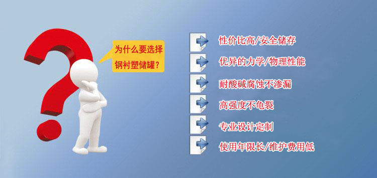 鋼襯塑儲罐由于其獨(dú)特的滾塑工藝、產(chǎn)品整體結(jié)構(gòu)和材料優(yōu)異性能,具有整體性好、強(qiáng)度高、無焊縫、不滲漏、抗沖擊、韌性好、重量輕、壽命長、耐酸堿、耐有機(jī)溶媒、符合衛(wèi)生標(biāo)準(zhǔn)、價(jià)格低廉、規(guī)格品種多等特點(diǎn)。尤其耐腐蝕、長壽命和大規(guī)格品種有非常大的優(yōu)勢,是貯存和運(yùn)輸各類化工液體半固體的理想產(chǎn)品。其性能大大超過了傳統(tǒng)的玻璃鋼、陶瓷、橡膠、焊接塑料等材料制作的防腐儲罐。