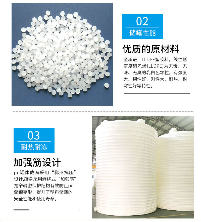規(guī)格:1噸塑料儲(chǔ)罐,2噸塑料儲(chǔ)罐,3噸塑料儲(chǔ)罐、5噸塑料儲(chǔ)罐、10噸塑料儲(chǔ)罐、15噸塑料儲(chǔ)罐、20噸塑料儲(chǔ)罐、30噸塑料儲(chǔ)罐、40噸塑料儲(chǔ)罐、50噸塑料儲(chǔ)罐