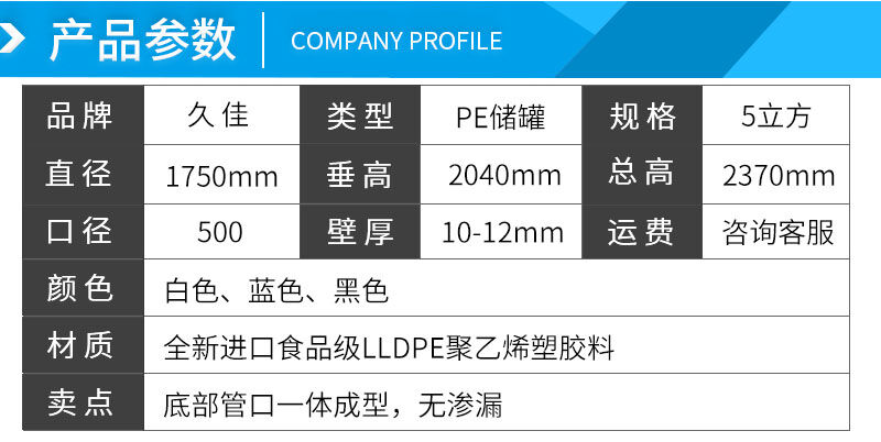 2.工藝:采用管口與罐體滾塑一次成型工藝,無縫無焊接。