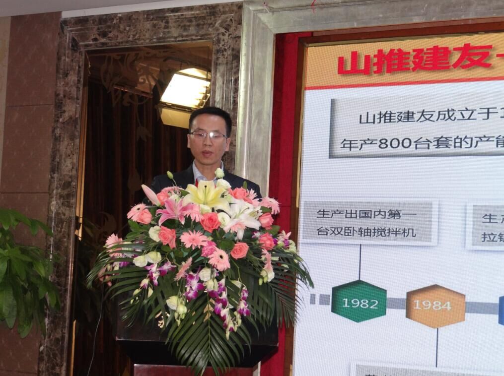 山推建友機(jī)械股份有限公司研究院院長(zhǎng)陳自云做《中國(guó)攪拌第一,專注凝聚,力恒強(qiáng)》的主題發(fā)言。