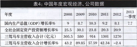 在連續(xù)多年保持高速增長之后,三駕馬車內(nèi)部約宅因素增多、外部環(huán)境嚴(yán)峻等狀況,均在年報(bào)中得到反映.其多項(xiàng)財(cái)務(wù)指標(biāo)出現(xiàn)回落趨勢。企業(yè)發(fā)展到于—個臨界點(diǎn),調(diào)整發(fā)展戰(zhàn)略的時間窗口已經(jīng)開啟。