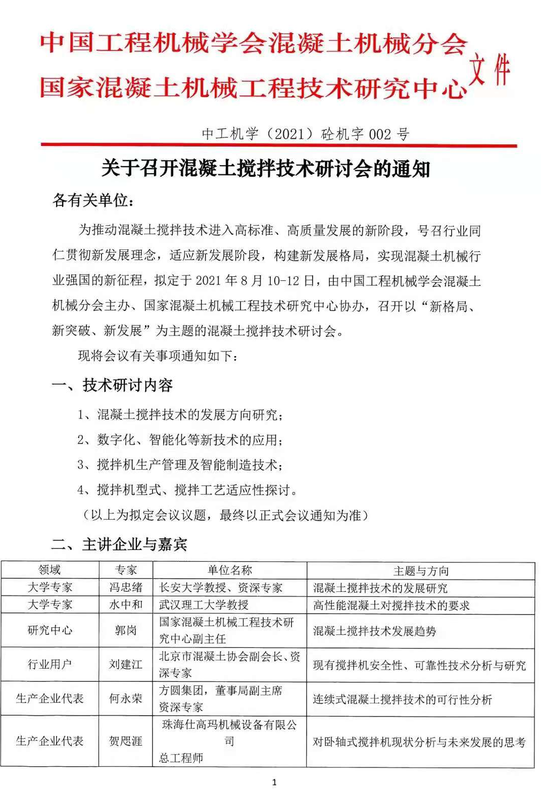 【通知】關(guān)于召開(kāi)混凝土攪拌技術(shù)研討會(huì)的通知