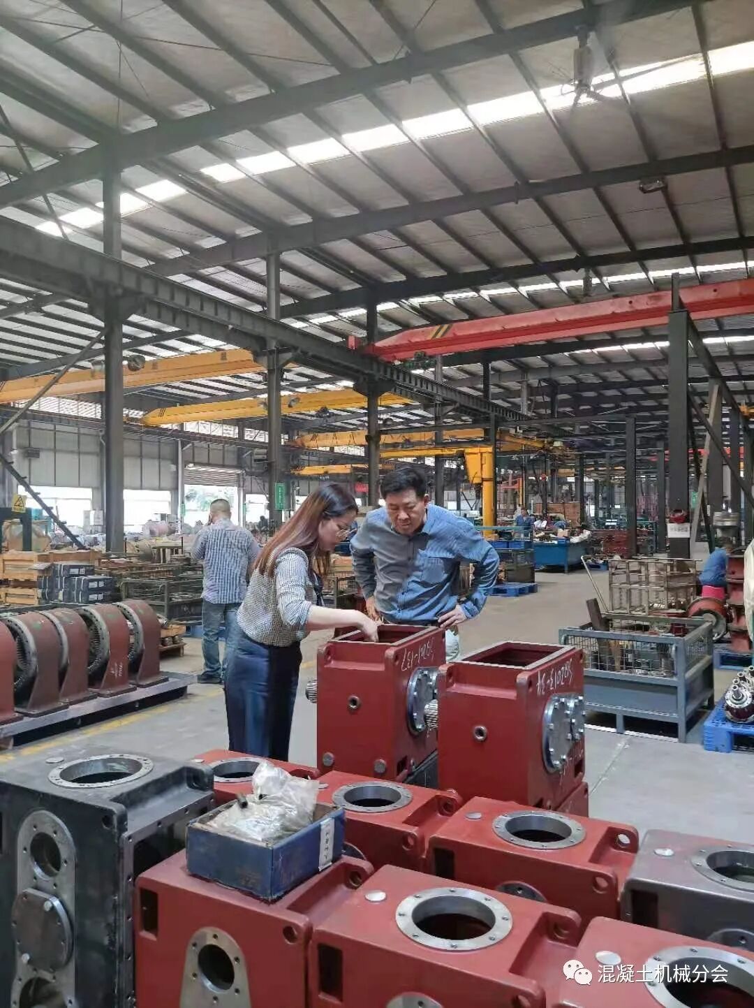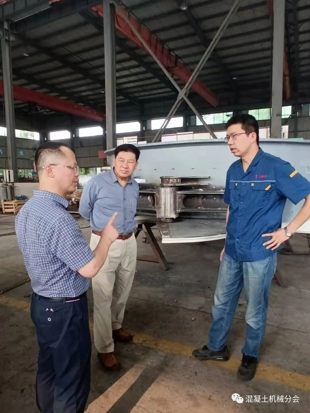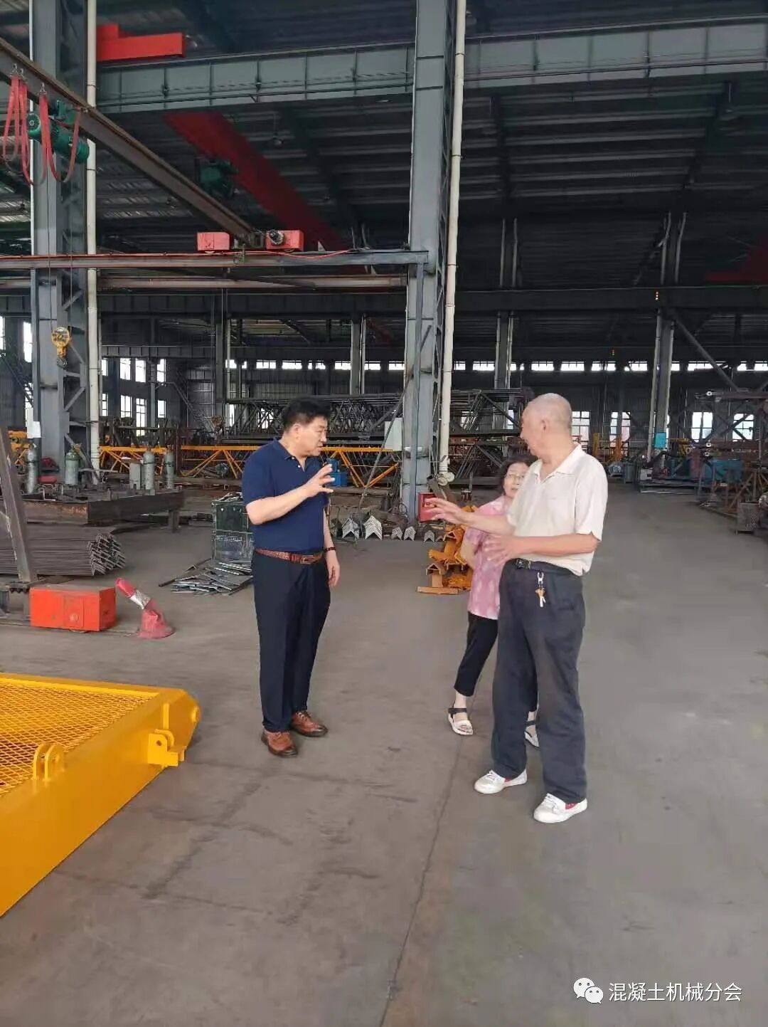 張工講到,周總外出學習趕不回來,特別交代自己和林總接待好符會長一行。在交流的過程中,張工也提到因為行業(yè)現(xiàn)在經營比較困難,公司基本停止了混凝土攪拌設備的生產,只有部分塔式起重機還在經營,也陪同會長在車間參觀了一圈,對實際的生產情況進行了解。