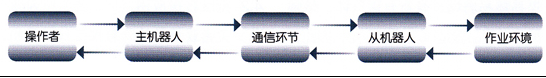 工程機器人研究的現(xiàn)狀表明,由于受到機構(gòu)、控制、傳感器以及人工智能水平的限制,研究出能在未知環(huán)境中全自主方式工作的機器人是目前難以實現(xiàn)的目標。因此,目前在核工業(yè)、搶險救災等高危、惡劣的環(huán)境中被廣泛應用的是遙操作機器人。遙操作機器人主要分為視覺臨場感遙操作機器人、力覺臨場感遙操作機器人、觸覺臨場感遙操作機器人及運動覺臨場感遙操作機器人等?;谂R場感的遙操作機器人系統(tǒng)原理如圖3所示,它由操作者、主機器人(手控器)、通訊環(huán)節(jié)、從機器人和作業(yè)環(huán)境5部分構(gòu)成。在臨場感系統(tǒng)工作過程中,由操作者向主機器人發(fā)出操作命令(如位置指令)操作主機器人運動,主機器人的運動信息通過通訊環(huán)節(jié)傳給遠方的從機器人,從而控制從機器人的運動;當從機器人同環(huán)境交互時,從機器人的運動信息(如視覺、力覺、觸覺等信息)又通過通訊環(huán)節(jié)反饋給本地主機器人,使操作者對于現(xiàn)場作業(yè)情況有了有效的感知,從而能夠及時做出準確判斷,發(fā)出相應的操作命令,控制遠方從機器人準確、高效地完成作業(yè)任務。目前,基于視覺臨場感的工程機器人遙操作控制主要是用攝像機獲取現(xiàn)場的視頻圖像并回傳到主控端,操縱者通過監(jiān)視器來完成對工程機器人的操作任務。